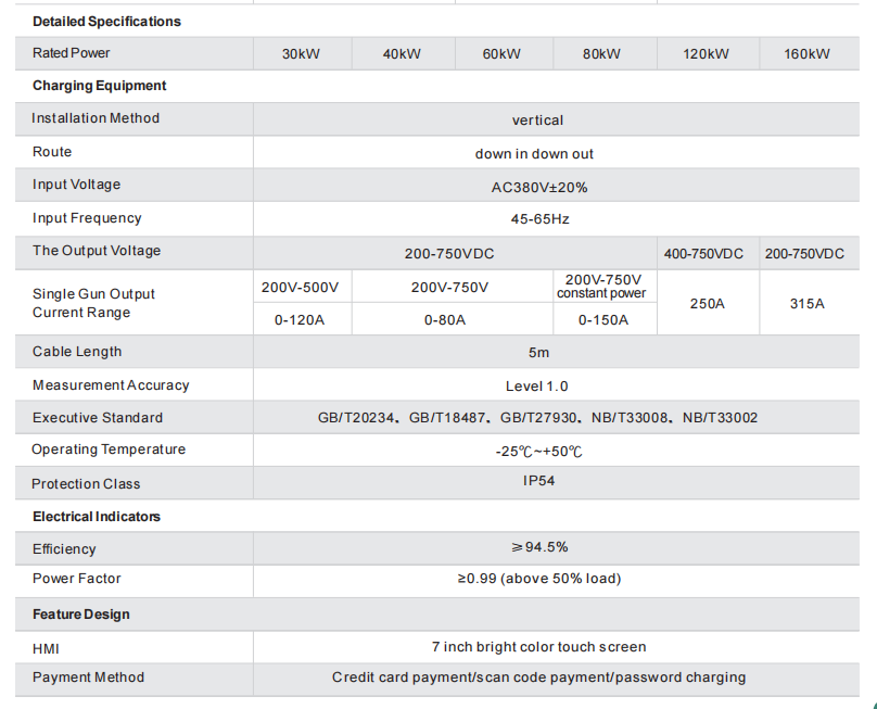 1) Rangewar wutar lantarki mai cajar: 30kw ~ 160kw.
